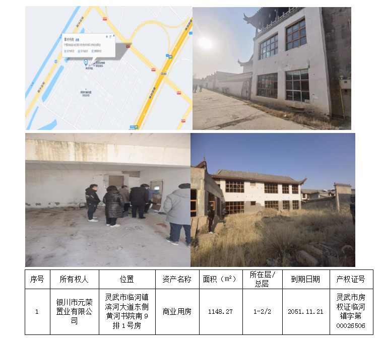 抵押物為靈武市臨河鎮(zhèn)濱河大道東側(cè)黃河書院南9排1號房(實際位置為由向東第三棟),面積1148.27平方米,由銀川市元榮置業(yè)保管?!包S河書院”位于靈武黃河岸邊,離銀川十幾公里,距離銀川河東國際機場約3公里。